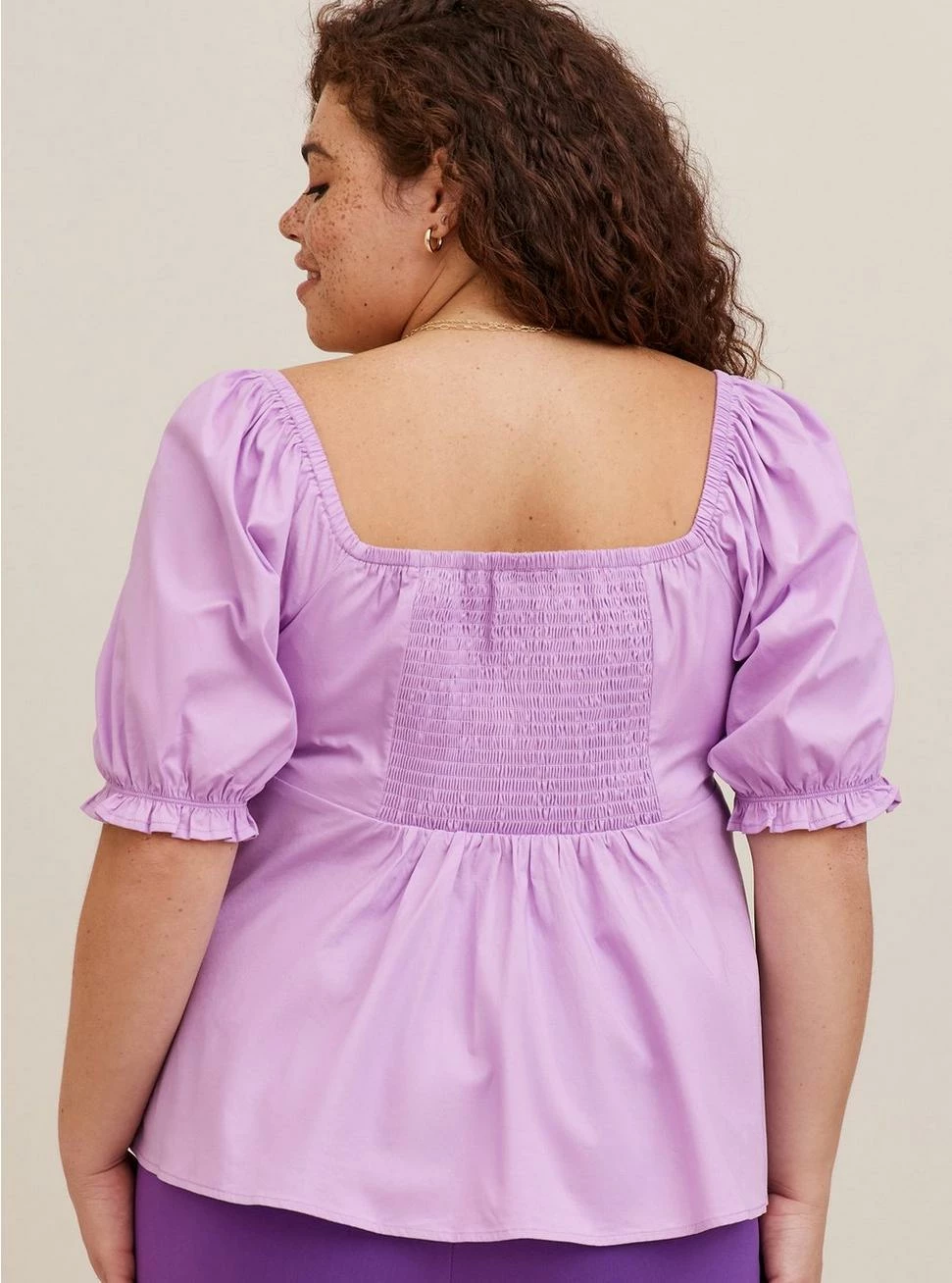 - Smocked back.
