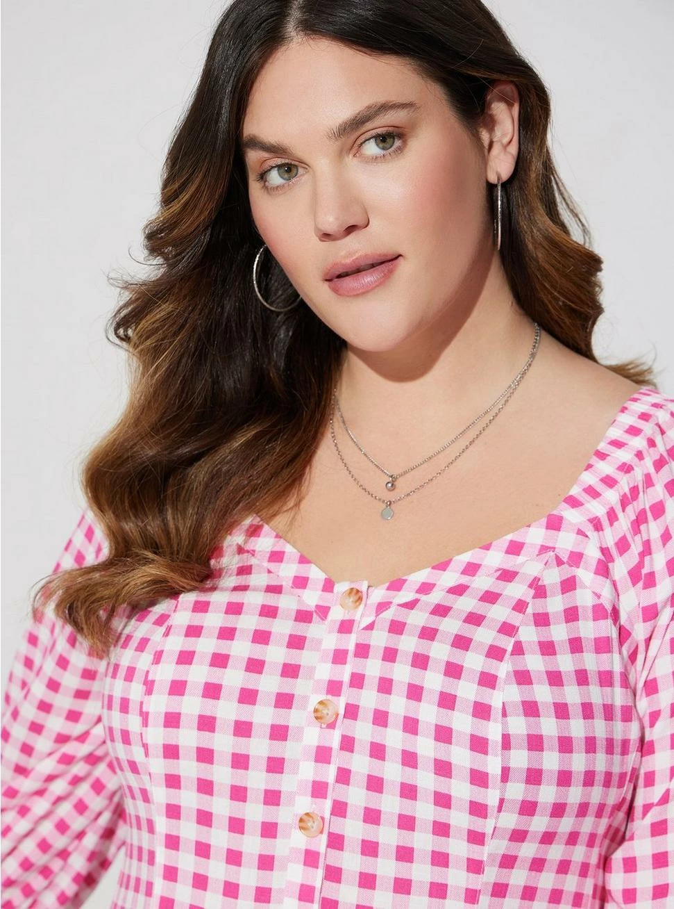 - Rayon Slub woven fabric: A soft, linen-like feel that drapes perfectly on the body with a touch of stretch. Perfect for when you want to be polished but comfy at the same time.