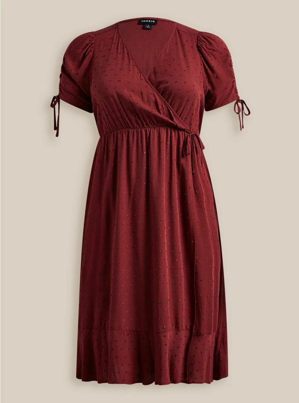 - Swiss dot textured woven fabric.