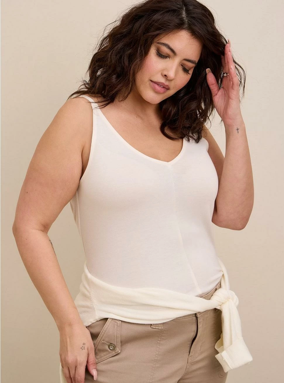- Studio Tissue Jersey knit fabric: A super soft, lightweight fabric with a subtle sheen that’s perfect under your favorite blouse or sweater.