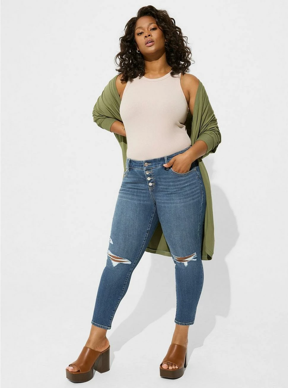 - Super Soft Rib knit fabric: An incredibly soft, versatile knit with a ribbed texture that hugs close to the body.